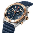 Introducing the Breitling Chronomat B01 42—a distinguished timepiece that seamlessly blends precision engineering with sophisticated design. This model features a robust 42mm stainless steel case complemented by an 18k red gold unidirectional rotating bezel, exuding both durability and elegance. The captivating blue dial enhances its unique aesthetic, while the blue rubber strap ensures a comfortable and stylish fit. Powered by Breitling's in-house Manufacture Caliber 01, this chronograph guarantees exceptional performance and reliability. With a water resistance of up to 200 meters, the Chronomat B01 42 is designed to accompany you through any endeavor, seamlessly transitioning from professional settings to adventurous pursuits.