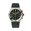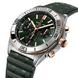Introducing the Breitling Chronomat B01 42—a distinguished timepiece that seamlessly blends precision engineering with sophisticated design. This model features a robust 42mm stainless steel case complemented by an 18k red gold unidirectional rotating bezel, exuding both durability and elegance. The captivating green dial enhances its unique aesthetic, while the green rubber strap ensures a comfortable and stylish fit. Powered by Breitling's in-house Manufacture Caliber 01, this chronograph guarantees exceptional performance and reliability. With a water resistance of up to 200 meters, the Chronomat B01 42 is designed to accompany you through any endeavor, seamlessly transitioning from professional settings to adventurous pursuits.