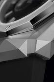 Lovers of art and extremely precise geometry received a new result of Hublots collaboration with the famous French artist Richard Orlinkski, which was the new 2023 Hublot Classic Fusion Chronograph Orlinkski Titanium, 41 mm, microblasted and polished Titanium, Reference 549.NI.1270.RX.ORL23. Despite the exquisite geometric design of the case, the watch has a strict polished black dial, which maintains its high readability. The faceted silver Rhodium plated hour and minute hands and Rhodium plated hour markers give the watch a unique and attractive appearance. The watch has small seconds dial located at the 3 o'clock position. The chronograph/stopwatch function includes a large, elegant central seconds hand with the H logo as a counterweight, and a 30-minute counter located at 9 o'clock. Polished titanium pushers operate it at 2 and 4 o'clock positions. Date window located the 6 o'clock positions. Helps you manage your watch polished titanium crown with the Hublot logo engraved with contoured grooves for improved grip. The dial closed by a Scratch-resistant Sapphire Crystal with Anti-reflective Treatment. The case back of the watch is also made of sapphire crystal, allowing you to observe the fantastic work of the watch movement. The model decorates a fixed dodecagonal Orlinski bezel in Microblasted and Polished Titanium, secured with six of Hublots' signature titanium "H" screws. The watch's flawless operation is ensured by the HUB1153 Self-winding Chronograph Movement, which contains 59 jewels and has an approximate power reserve of 42 hours. This model is presented on an elegant and comfortable Black Smooth Rubber Straps with Stainless Steel Deployant Buckle Clasp. The water resistance is up to 50m/65ft (5 ATM).