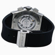 Hublot Classic Fusion Chronograph Titanium 42mm watch, polished titanium case with brushed finished top and bottom center links between the lugs, Reference 541.NX.1171.RX. This model has Matte Black dial with applied polished finished stainless steel index hour markers and polished rhodium plated hands. Black inner bezel flange on the perimeter of the dial with fine printed minute/seconds track. The watch has Small-seconds sub-dial located at the 3 o'clock position. Chronograph/Stopwatch function: large central seconds counter with the "H" logo as a counter-weight; 30-minute sub-dial counter located at the 9 o'clock position. Polished titanium buttons control the chronograph. Date window located at the 6 o'clock position. Polished titanium crown with the Hublot logo. The dial closed by a Scratch-resistant Sapphire Crystal with Anti-reflective Treatment. Of Sapphire Crystal made transparent case back. The watch is equipped fixed titanium bezel with a brushed finished top and polished finished beveled edge, secured with 6 polished "H" style titanium screws. Black composite resin "bezel lug" sandwiched between the bezel and case. The watch is self-winding mechanical Hublot Caliber HUB1153, contains 35 Jewels and has an approximate power reserve of 42 hours. This model presented on a Black Lined Rubber Straps with Stainless Steel Deployant Buckle Clasp. The water resistance is up to 50m/150ft (5 ATM).