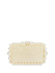 Perfect for evening events, weddings, and special occasions, this compact yet spacious clutch effortlessly holds your essentials while elevating your look. The structured rectangular silhouette and lustrous pearl detailing make it a versatile piece that pairs beautifully with everything from cocktail dresses to formal gowns.