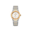 Unworn Omega Constellation CO‑AXIAL MASTER CHRONOMETER 131.20.29.20.52.002. 29 mm, Crystal white slivery dial, Steel ‑ yellow gold case, Yellow gold bezel, 8700 calibre, Self Winding Movement, 50 Hours power reserve, Steel ‑ yellow gold mono-rang bracelet with Butterfly clasp. Water resistant to 50 m.