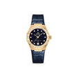 Unworn Omega Constellation CO‑AXIAL MASTER CHRONOMETER 131.58.29.20.53.001. 29 mm, Blue aventurine glass dial, Yellow gold case, Yellow gold bezel, 8701 calibre, Self Winding Movement, 50 Hours power reserve, Leather strap Pin buckle clasp. Water resistant to 50 m.