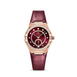 - Bracelet Material: Shimmering Burgundy Leather strap