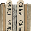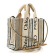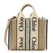 This is an authentic CHLOE Cotton Calfskin Small Woody Ribbon Tote With Strap in Soft Tan. This stylish tote is crafted of natural beige canvas, with light brown leather trim. It features canvas top handles and an extra leather strap. The top opens to a beige fabric interior with a patch pocket.