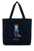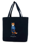 TOTE BAG MADE OF DURABLE FABRIC WITH STURDY HANDLES, CHARACTERIZED BY A DRESSED FOX PRINT. IT FEATURES AN OPEN COMPARTMENT AND AN INTERNAL FLAT POCKET. THE BAG IS SPACIOUS AND IDEAL FOR EVERYDAY USE, PERFECT FOR SHOPPING, WORK, OR RECREATIONAL ACTIVITIES. EASY TO CLEAN AND DURABLE, IT COMBINES FUNCTIONALITY AND STYLE.
