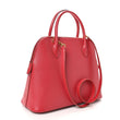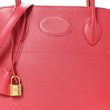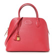 This is an authentic HERMES Courchevel Bolide 31 in Rouge Vif. This stylish tote is crafted of lovely soft courchevel calfskin leather in red. The bag features rolled leather top handles, an optional leather shoulder strap with gold clasps, and a hanging clochette with a key. The top zipper is secured with a padlock, and opens to a spacious leather interior with a patch pocket.