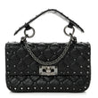 Craquele Nappa Small Rockstud Spike Shoulder Bag Black