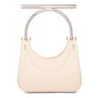 Crafted from luxurious lambskin leather, this elegant shoulder bag features distinctive curved handles and a refined silhouette that effortlessly transitions from day to night.