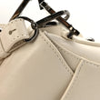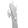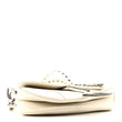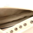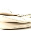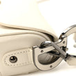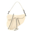 This is an authentic CHRISTIAN DIOR Crinkled Patent Lambskin Studded Saddle Bag With Strap in White. This bag features the saddle bag shape, a short leather shoulder strap with polished brass "C" and "D" anchors on either end of the handle, and a prominent hanging Dior "D" charm. The interior of the bag is a white microfiber textile.