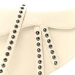 Crinkled Patent Lambskin Studded Saddle Bag with Strap Latte