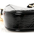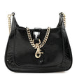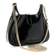 This is an authentic GUCCI Crinkled Patent Mini Jackie Notte Bag in Black. This stylish hobo is crafted of luxuriously crinkled patent leather in black. The bag features a polished gold chain link shoulder strap with a polished gold piston closure. This opens to a red leather interior with pockets.