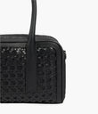 Crafted from soft, natural calfskin with an artisanal finish, this versatile handbag for day or night, carried over the shoulder, crossbody, or by hand. Timeless style featuring intreccio weave, open and zipped internal compartments, Aviteur prism clasp.