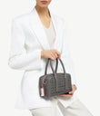 Crafted from soft, natural calfskin with an artisanal finish, this versatile handbag for day or night, carried over the shoulder, crossbody, or by hand. Timeless style featuring intreccio weave, open and zipped internal compartments, Aviteur prism clasp.