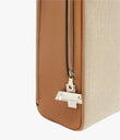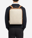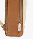 Backpack in canvas with walnut leather trim and intreccio shoulder straps. Double zipped compartments, interior pocket, palladium zips, Aviteur prism clasp.