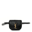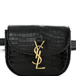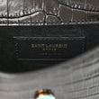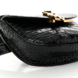 This is an authentic SAINT LAURENT Crocodile Embossed Calfskin Small Kaia Satchel in Black. This stylish messenger bag is crafted of crocodile embossed calfskin leather in black. The bag features an adjustable leather crossbody strap with gold hardware and a crossover flap with a gold-toned YSL logo. The flap opens to a black suede interior with a patch pocket.