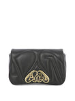 Elevate your accessory collection with this stunning crossbody bag from Alexander McQueen. Crafted with the brand's signature attention to detail, this piece features distinctive quilted leather and an eye-catching gold-tone logo clasp that makes a bold statement.