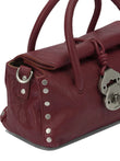 Elevate your everyday style with this exquisite crossbody bag from Zanellato. Crafted in rich burgundy leather, this structured piece features a distinctive oversized lock closure and elegant studded detailing along the sides.