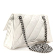 This is an authentic BALENCIAGA Crushed Calfskin Quilted Small Crush Chain Bag in White. This stylish and structured handbag is crafted of quilted white calfskin leather. The bag features a prominent silver B logo on the front flap and a silver chain shoulder strap. The front flap opens with a magnetic snap closure to a smooth white leather compact interior with zipper and patch pockets.