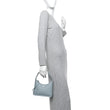 This is an authentic FENDI Cuoio Roma Sellerissima Nappa Sintetica Tape Stitch Mini Fendessence Shoulder Bag in Anice. This satchel is crafted of calfskin leather in light blue. It features a sturdy handle, silver hardware, and a top zipper. The bag opens to a taupe suede lining interior.
