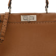 This is an authentic FENDI Cuoio Romano Selleria Bi-Color Medium Peekaboo Iconic Satchel in Mou and Deserto. This stylish handmade tote is crafted of richly grained calfskin leather with hand stitching in brown. The bag features a looping top handle, an optional shoulder strap, and a silver turn-lock on either side that opens the bag to a beige suede and calfskin leather interior with a pocket.