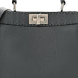 This is an authentic FENDI Cuoio Romano Selleria Chamois Small Peekaboo I SEE U Satchel in Asfalto. This chic tote is crafted of grained calfskin leather in grey with hand stitching. The bag features a looping top handle, an optional shoulder strap, and a silver turn-lock on either side that opens to a grey leather interior with a patch pocket.