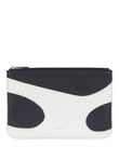 The secure zipper closure and compact silhouette make it perfect for keeping your phone protected while on the go, whether you're running errands or enjoying an evening out. The silver-tone hardware adds a refined finishing touch that complements the striking black and white color blocking.