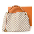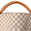 This is an authentic LOUIS VUITTON Damier Azur Artsy MM. This stylish hobo style shoulder bag is crafted of Louis Vuitton signature damier check canvas in blue and white, a rolled vachetta cowhide shoulder strap with polished gold hardware. The top opens to a beige microfiber interior with a zipper and patch pockets.