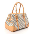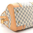This is an authentic LOUIS VUITTON Damier Azur Berkeley. This stylish handbag is crafted of signature Damier checkered canvas in blue and white with vachetta cowhide leather trim. This bag features adjustable rolled leather top handles, external side pockets and polished brass hardware. The top double zipper opens to a beige microfiber interior with patch pockets.