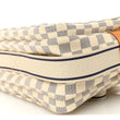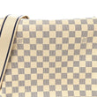This is an authentic LOUIS VUITTON Damier Azur Naviglio. This messenger bag is crafted of signature damier canvas in ivory and azur blue with natural vachetta leather trim. The bag features an adjustable nylon canvas shoulder strap with Louis Vuitton's signature lettering and short top flaps with polished gold snaps that open to reveal a gold top zipper. The interior is lined with a durable ivory canvas and features full pockets on either side of the main compartment as well as a patch pocket.