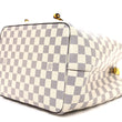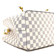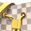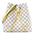 This is an authentic LOUIS VUITTON Damier Azur Neonoe MM in Pineapple. This classic bucket style shoulder bag is crafted of Louis Vuitton damier coated canvas in white and blue. The bag features an adjustable bright yellow leather shoulder strap and top cinch cord, with polished brass hardware. The top is open to a partitioned yellow microfiber interior with a central zipper pocket to keep you organized.
