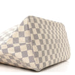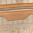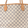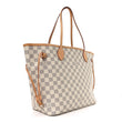 This is an authentic LOUIS VUITTON Damier Azur Neverfull MM. This stylish tote is crafted of Louis Vuitton's signature damier canvas in blue and white. This shoulder bag features vachetta cowhide leather trim, including strap handles and side cinch cords, with polished gold hardware. The top is wide and open to a striped ivory fabric interior with a hanging pocket.