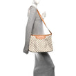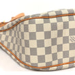 This is an authentic LOUIS VUITTON Damier Azur Siracusa MM. This stylish shoulder bag is crafted of Louis Vuitton damier azur blue and white checkered canvas with a distinctive pleated structure design. It features an adjustable signature vachetta cowhide leather shoulder strap and polished brass hardware and buckle. The polished brass top zipper opens to a beige fabric interior with pockets.