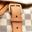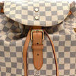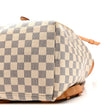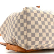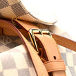 This is an authentic LOUIS VUITTON Damier Azur Sperone in Backpack. This stylish backpack is crafted of damier coated canvas in blue and white. The backpack features vachetta leather trim, a top handle, and adjustable shoulder straps, with polished brass hardware. The crossover flap opens to a light pink microfiber interior with patch pockets and a D-ring.
