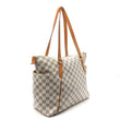 This is an authentic LOUIS VUITTON Damier Azur Totally GM. This stylish tote is finely crafted of Louis Vuitton signature damier canvas. The shoulder bag feature vachetta cowhide leather shoulder straps and polished brass hardware with bucket pockets on the sides. The top zipper opens to an beige fabric interior with patch pockets.