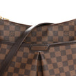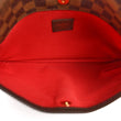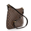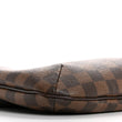 This is an authentic LOUIS VUITTON Damier Ebene Bloomsbury PM. This chic shoulder bag is crafted of pleated Louis Vuitton checkerboard coated canvas in brown with dark brown leather trim, a full pocket at the front and an adjustable brown leather shoulder strap. The top zipper opens to a red fabric interior with patch pockets.