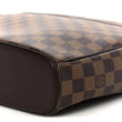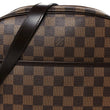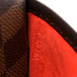 This is an authentic LOUIS VUITTON Damier Ebene Ipanema GM. This stylish shoulder bag is crafted of Louis Vuitton signature damier canvas. The bag features a dark brown leather shoulder strap with polished brass hardware and matching trim for the wide front pocket. The top zipper opens to a red orange microfiber interior with flat pockets.