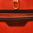 This is an authentic LOUIS VUITTON Damier Ebene Manosque GM. This chic tote, in the largest size, is crafted of Louis Vuitton's signature checkerboard coated canvas in brown. The bag features complimentary brown rolled leather top handles, front flap pockets with buckles and belt closures, leather trim, polished gold-toned hardware and a removable mini purse. The top is open to a spacious orange microfiber interior with two zippered pockets and d-ring.