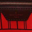 This is an authentic LOUIS VUITTON Damier Ebene Neo Neverfull MM. This chic tote bag is crafted of classic Louis Vuitton Damier checkerboard canvas with dark brown cowhide leather shoulder straps and trim. The top is open to an interior of rouge red striped fabric with a hanging zipper pocket.
