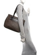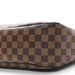 This is an authentic LOUIS VUITTON Damier Ebene Parioli PM. This stylish shoulder bag is crafted of Louis Vuitton signature checkerboard coated canvas in brown. The bag features brown leather shoulder straps and a magnetic top that opens to a red microfiber interior with patch pockets.