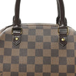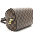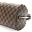 This is an authentic LOUIS VUITTON Damier Ebene Ribera Mini. This chic bag is finely crafted of signature Louis Vuitton Damier patterned canvas. The bag features dark brown leather top handles and trim, with polished brass hardware. The top zipper opens to a brick red fabric interior with a pocket.