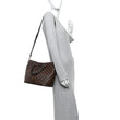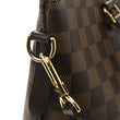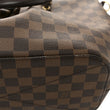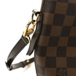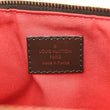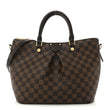 This is an authentic LOUIS VUITTON Damier Ebene Siena MM. This stylish tote is crafted of Louis Vuitton checkerboard on pleated, coated canvas in brown. The bag features chocolate brown leather trim, brown leather rolled top handles, an optional leather shoulder strap, and polished gold hardware. The top zipper opens to a red fabric interior with patch pockets.