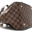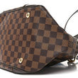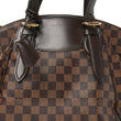 This is an authentic LOUIS VUITTON Damier Ebene Verona MM. This shoulder bag is crafted of signature damier checkered toile canvas. This handbag features brown leather adjustable shoulder straps, trim, and polished gold hardware. The top zipper opens to a durable red fabric interior with patch pockets.