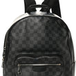 This is an authentic LOUIS VUITTON Damier Graphite Josh Backpack. This stylish backpack is crafted of Louis Vuitton's signature checkerboard coated canvas in grey with smooth black leather trim. The bag features a small front zipper compartment and adjustable nylon shoulder straps. The polished silver wrap-around zipper opens to a black fabric interior with patch pockets.