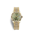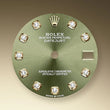 • Dial color: Olive green dial with a fine sunray and 10 Diamonds as hour markers framed in 18k Yellow Gold