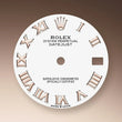 - Dial color: White dial with a applied polished 18k Everose Gold Roman numerals as hour markers