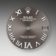 - Dial color: Dark grey dial with a applied polished 18k White Gold Roman numerals as hour markers and 11 diamonds on large numeral VI