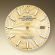 Rolex Datejust 36 watch with polished 18k Yellow Gold and Stainless Steel case, Reference 126233-0037. This model has Champagne dial with palm motif. The dial is adorned Rolex Crown logo of 18k Yellow Gold at the 12 o'clock position, applied polished yellow gold index hour markers with luminous fill, and polished 18k Yellow Gold hands, hour and minute hands with luminous fill. Date window with a "Cyclops" magnifying lens displayed at the 3 o'clock position. Polished 18k Yellow Gold "Twinlock" crown, featuring two sealed zones when the crown is screwed down: the first inside the tube of the crown, the second inside the winding crown itself. The dial closed by a Scratch-resistant Sapphire Crystal and solid case back made. The watch is equipped fluted fixed polished 18k Yellow Gold bezel. The watch is mechanical self-winding Manufacture Rolex 3235 contains 31 Jewels and has an approximate power reserve of 70 hours of power reserve. This model presented on Jubilee bracelet of brushed Stainless Steel outer links and polished 18k Yellow Gold center links with a Folding Oysterlock safety clasp with Easylink 5 mm comfort extension link. The water resistance is up to 100m/330ft (10 ATM). The watch is Superlative Chronometer certified: the movement is COSC certified prior to casing, then it is tested a second time by Rolex after being cased to ensure accuracy
