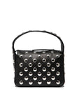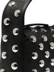 Khaite "Elena" handbag, made of cowhide leather. The compact structure features a rigid box silhouette, characterized by the regular application of metal studs on the surface. The handbag features an integrated shoulder strap that expands its versatility of use. The top closure is managed by a zipper that keeps the profiles sharp. The interior is organized with an internal pouch pocket.