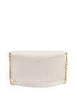 Golden Goose "Gioia" crossbody bag made of leather with a compact structure. Rectangular shape, rigid silhouette with defined profiles. Top key closure with golden metal buckle and integrated side buttons. Shoulder strap features a metal chain and applicable leather top handle. Triple interior organization with card holder, central zippered pocket and separate compartments. Printed logo on the back, hidden external back pocket.